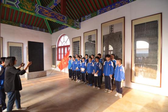 拾阶而上,浓郁的书墨文化气息扑面而来。台阶东西两侧《南宫碑体师承馆》和《崇华堂》匾额上黑底金字格外醒目。