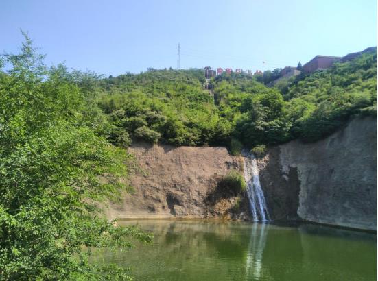 站在红山之巅,翰墨苑红墙金顶,气势恢宏的书法长廊直达红山脚下,像并肩伏卧的两条祥龙,守护着磁山一方百姓风调雨顺,康泰平安。山顶上,流水淙淙,从八角小亭穿过,形成三叠瀑布飞流直下,像一条银链悬挂在山间,瀑布的水流注入水潭,通过拱桥与不远处的另一个水潭相连,潭水清澈,碧波荡漾,宛如红山明媚的双眸,仰视晴空。漫山树木郁郁葱葱,竹林摇曳,山光水色,自然景观,人文环境,交相辉映,生机盎然。