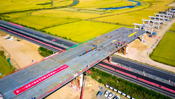 日前,由中铁二十三局承建的铁科高速方正西枢纽互通施工现场,随着最后一片钢箱梁精准落位,标志着方正西枢纽互通主线桥主跨哈同高速钢箱梁成功合龙,提前完成铁科高速控制性工程方正西枢纽互通钢箱梁全部节点工期目标,为后续施工奠定良好基础。