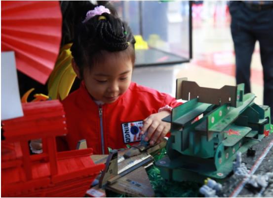 其中,备受关注的当数全球机器人大赛中的格斗机器人项目。格斗机器人由该校同学自助设计、打印、编程。该项目由两位同学现场演示,一位同学现场讲解。只听一声令下,机器人你追我赶,激烈搏斗,两位同学全神贯注,完全沉浸在赛事中。观众兴致勃勃,连声称赞;小朋友们目不转睛,跃跃欲试。