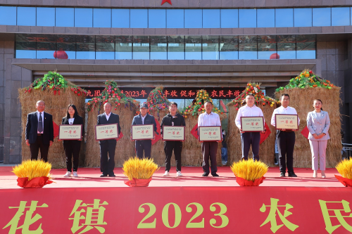 随后,由出席嘉宾为在2023年九团梨花镇农民丰收节系列活动中取得优异成绩的单位和个人颁奖。