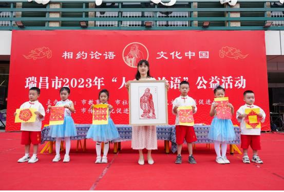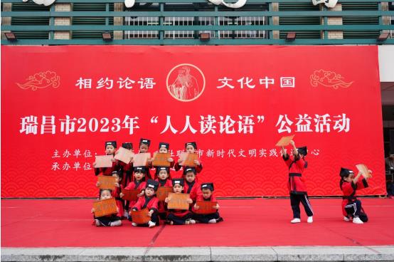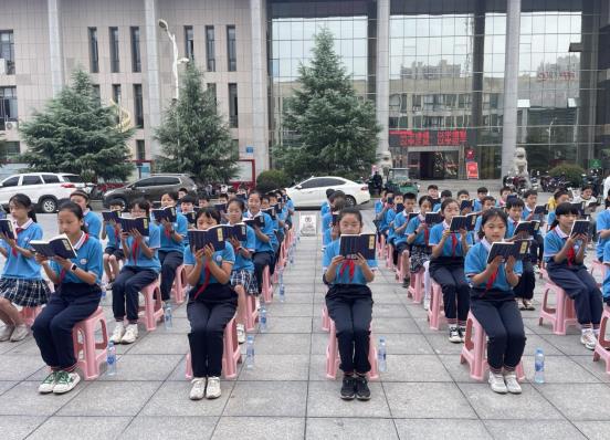 在经典诵读环节,来自市第六小学的同学们和现场全体人员以饱满的热情齐诵儒家经典篇目选段《论语学而篇第一》,从中华优秀传统文化中汲取营养和智慧。