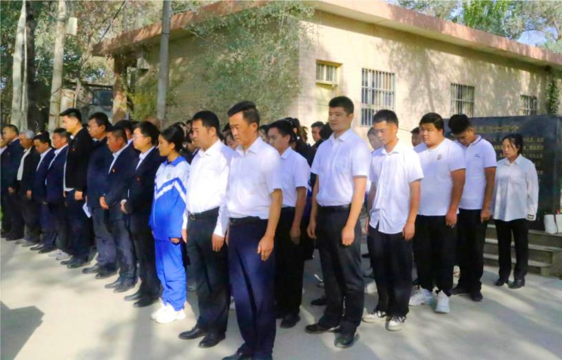2023年9月30日是我国第十个烈士纪念日。为深切悼念老一辈先烈,传承红色基因,赓续红色血脉,“9·30烈士纪念日”前夕,新疆生产建设兵团第一师阿拉尔市七团组织机关事业单位党员干部代表、退役军人代表、七团中学师生代表共计70余人,赴塔里木河拦河闸水文站戴根发烈士墓开展第十个全国烈士纪念日活动。团镇党委常委、纪委书记监察办主任刘玉东主持活动。