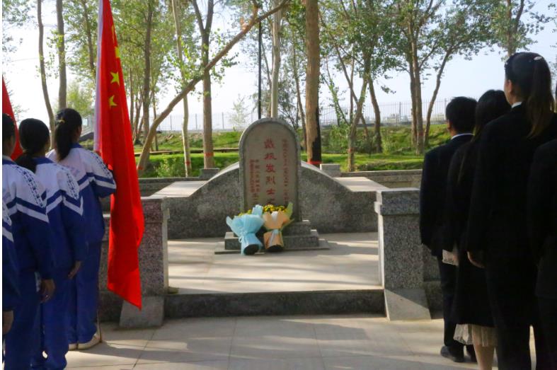现场人员庄严列队肃立,七团中学学生代表赵冰月向戴根发烈士敬奉鲜花,全体人员默哀致敬。退役军人代表十五连党支部书记易同明带领大家集体宣誓,共同缅怀戴根发烈士能吃苦、能奉献、能战斗、勇于牺牲的精神,追思戴根发烈士的不朽功绩。