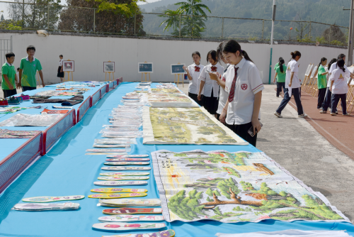 在参展的作品中,有州县级名家、家长、老师和学生的书法、绘画、摄影和刺绣等不同风格的作品近3000件。有现代元素风格,也有充满古典风格元素,呈现百家争鸣、百花齐放局面。同时,还评出家长和学生的一、二、三等奖和鼓励奖整个校园176个奖项。接下来,在操场上开展学生现场书法比赛,由州文联、书法协会会员潘应方、石龙贤,县文化馆馆长杨光黔,县文联主席陈贤辉,县书法协会主席李世德亲临现场指导。接下来,还为各位师生临场献作。