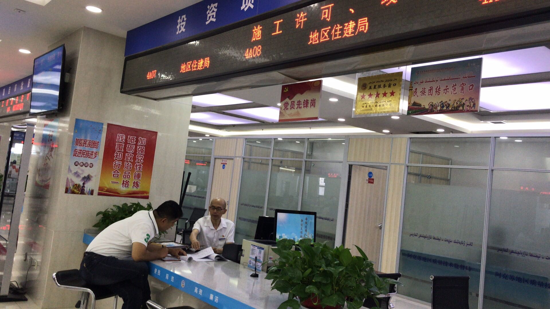 近年来,阿克苏地区政务服务和公共资源交易中心不断优化营商环境,大力推进“只上一张网、只进一扇门、最多跑一次”改革,深入开展营商环境突出问题专项整治,一方面着力提升高速高效的网上办事体验,另一方面着力打造规范运行的实体办事大厅,通过政务服务的提质增效,持续增加企业和群众办事的获得感和满意度。(新疆阿克苏地区住建局:赵勇、苗芹)
