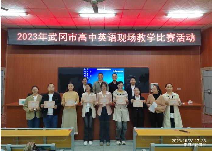 为进一步推进全市高中英语课堂教学改革,深入研究高中英语课堂教学,更好地促进学生英语综合技能发展,全面提升全市高中英语教学的专业水平和课堂质量,10月26日,武冈市2023年高中英语现场教学比赛活动在武冈十中隆重举行。全市9所高中学校各选派一名英语教师参赛。