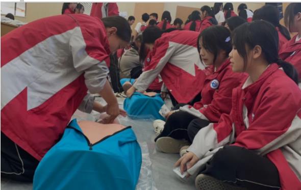 “心源性疾病引发休克无意识昏迷、猝死,就急需心肺复苏,黄金时间仅4分钟......”近日,湖北省沙洋县红十字会组织省红十字救护员培训项目中标单位荆楚理工学院和县救在身边应急救护培训中心,对沙洋县职业技术学校二年级护理专业师生分3 期进行了心肺复苏、创伤救护、自动体外除颤仪的使用、烧烫伤和气道异物梗阻的处置等救护知识培训。