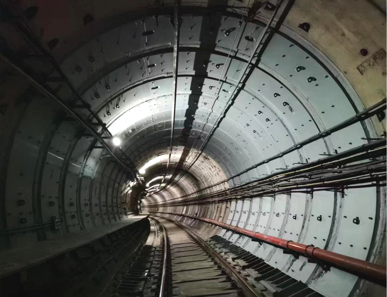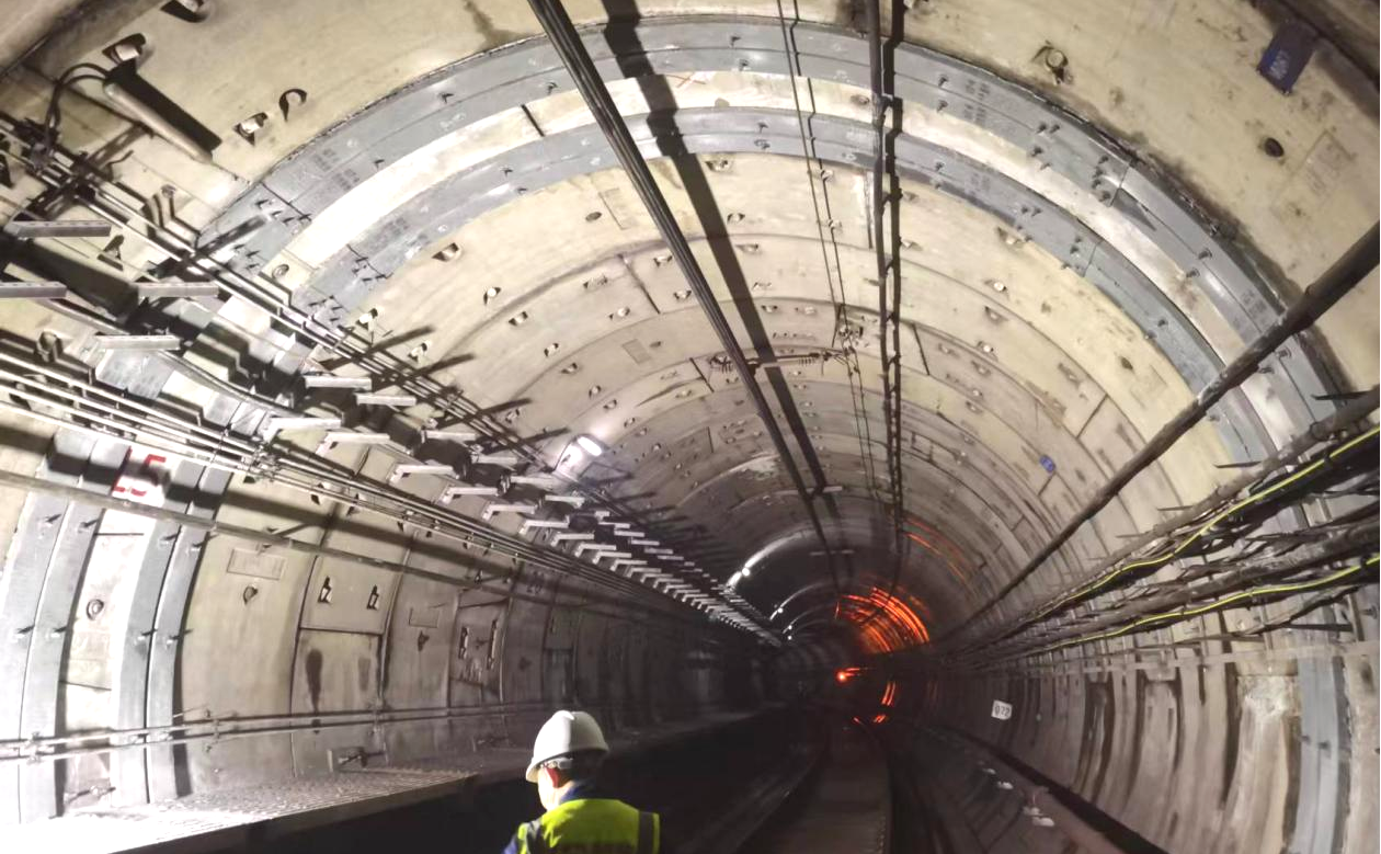《软弱地层地铁隧道管片钢环加固施工工法》主要应用在软弱地层中隧道变形量超过设计值、沉降位移及收敛过大等情况。其主要施工工艺是先对隧道周围不良地质进行注浆预加固,然后对管片表面及局部病害进行处置,同时对施工影响范围内的地铁运营管线和支架进行前置防护,再操作机械手臂安装钢环,通过设置抗剪化学锚栓加强变形协调,最后采用硬性环氧树脂将钢环与隧道管片间空隙全部填充,使叠合结构共同受力。该工法在武汉、南昌等多个轨道交通运营线路维保工程中成功应用并取得了显著效果。
