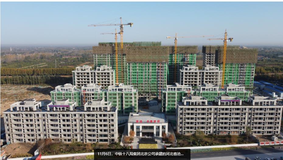 11月6日,中铁十八局集团北京公司承建的河北省沧州市泊头市书香学府项目主体结构全面封顶。