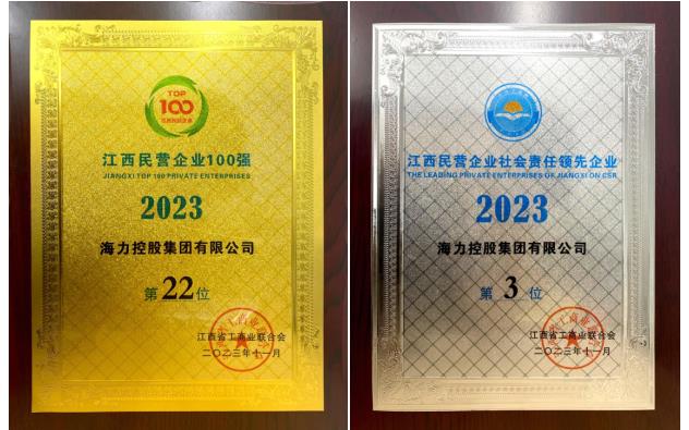 11月3日,2023江西民营企业100强和社会责任发布会在南昌召开。会上发布了2023江西民营企业100强、制造业民营企业100强、服务业民营企业20强榜单,发布了2023江西上规模民营企业调研分析报告、江西民营企业社会责任报告。海力控股集团位列“2023江西民营企业100强”榜单第22位、2023江西民营企业社会责任领先企业第3位,已连续五年跻身省民营企业百强前列,集团董事长卜莉莉出席活动并代表公司上台领奖。