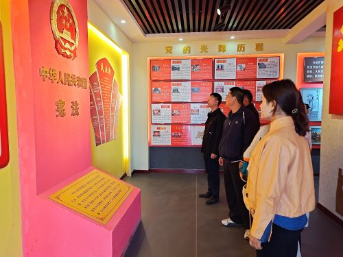 首先来到党史陈列馆前,全体党员肃立,并庄严高举右手,面向党旗重温入党誓词。随后,在讲解员的介绍下,党员同志们怀着肃穆而敬仰的心情参观了党史陈列馆,并在宪法的发展里程和民法典陈列墙面前驻足学习。最后,大家一起在铸牢中华民族共同体意识教育基地牌前,集体感悟中华民族的伟大。通过观看展出的图片、文字、实物,革命先辈坚定的革命信仰和大无畏的牺牲精神深深触动着我们,是我们学习的榜样。