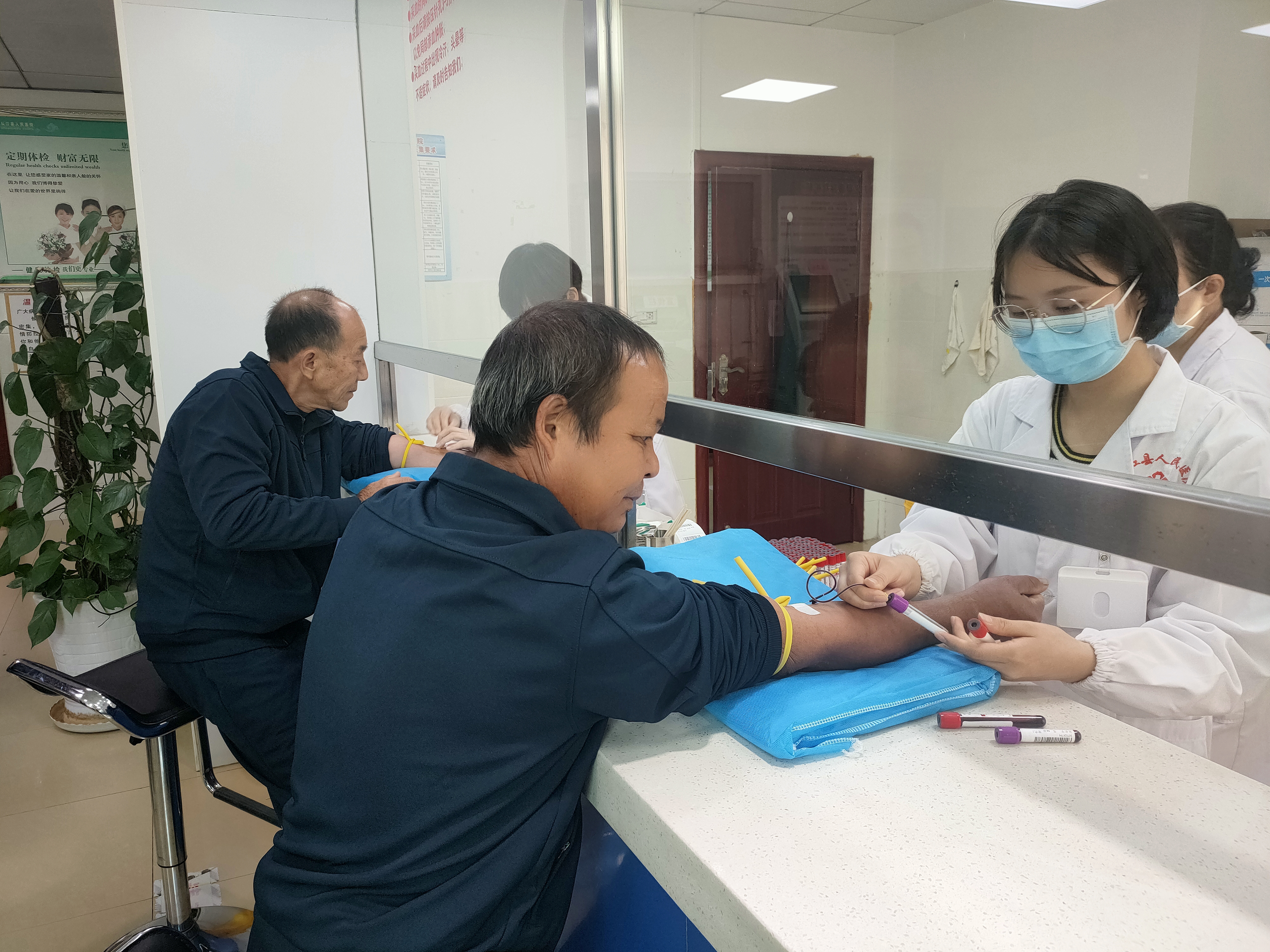 图为 开展健康体检血常规检查采样现场(吴先红 摄影)