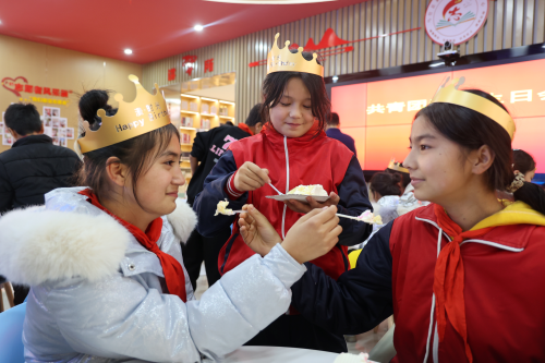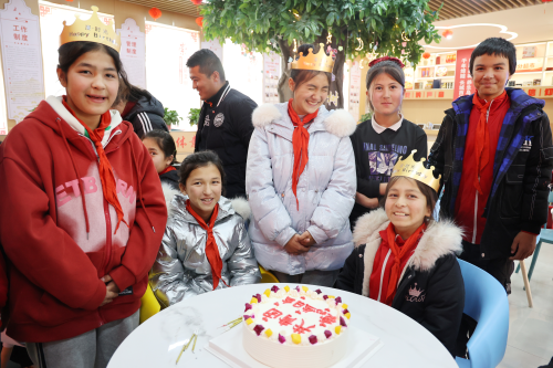 11月24日,在乌什县新时代文明实践中心,乌什县团委联合乌什县阿合雅镇中心小学开展“共青团爱心生日会”活动现场。外力·克依木摄