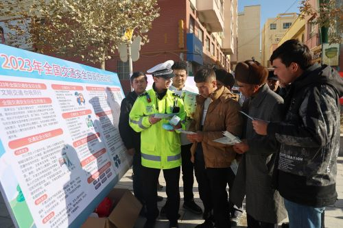 12月5日,在乌什县人民广场,县公安局交警大队开展“文明交通 你我同行”主题志愿服务活动。外力·克依木 摄
