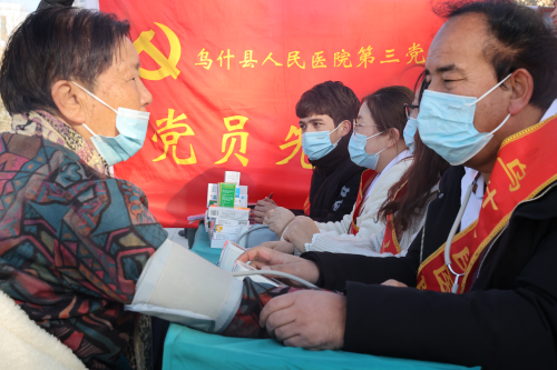 12月5日,在乌什县人民广场,县人民医院“白求恩”志愿服务队开展义诊惠民活动。外力·克依木 摄