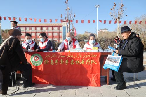 12月5日,在乌什县人民广场,县中医院(维吾尔医院)志愿服务队开展医疗惠民、义诊志愿服务活动。外力·克依木 摄