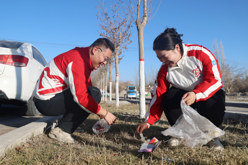 12月5日,在县戍边文化广场,乌什县团县委组织开展爱国卫生志愿者服务活动。外力·克依木 摄