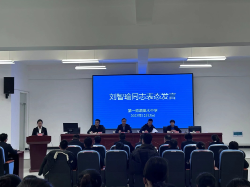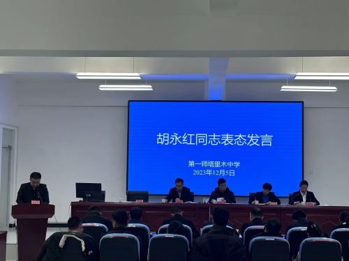 12月5日下午,第一师塔里木中学教师大会在西校区尚文楼阶梯教室召开。师市教育局党组书记、局长凤树峰,师市教育局党组成员、副局长徐艳,阿拉尔中学党委书记程晓龙出席,大会由塔里木中学党支部书记刘智瑜主持。