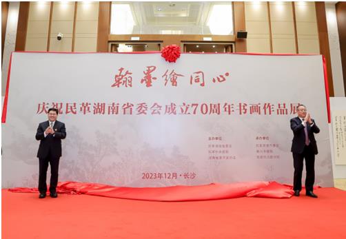 12月5日上午,庆祝民革湖南省委会成立70周年书画作品展在湖南宾馆开展。全国人大常委会副委员长、民革中央主席郑建邦和中共湖南省委常委、省委统战部部长隋忠诚共同为书画作品展开幕式揭幕。