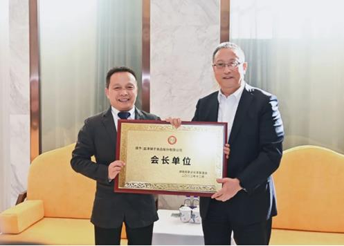 12月5日,湖南民革企业家联谊会第二届第一次理事大会在长沙市湖南宾馆召开,企联会全体理事参加会议。全国人大常委会副委员长、民革中央主席郑建邦亲切接见了湖南民革企业家联谊会理事会班子成员,并为盐津铺子授予“会长单位”牌匾。