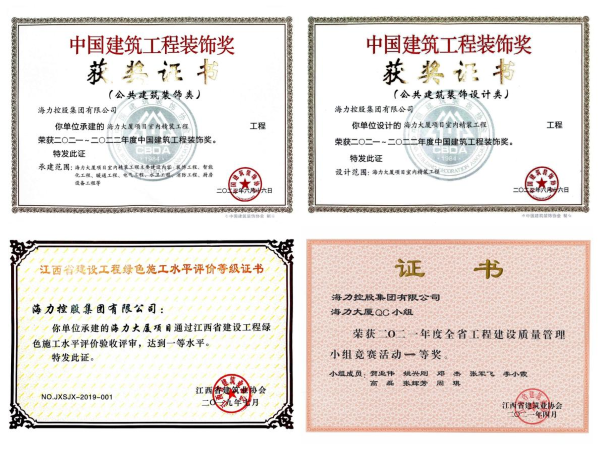 项目先后获得中国建筑工程装饰奖、江西省优质建设工程杜鹃花奖、江西省建筑业新技术应用示范工程、江西省建设工程绿色施工水平评价一等水平、中国建筑业协会2021年度建设工程项目绿色建造竞赛二等成果、江西省2022年度BIM技术应用示范项目(设计与施工)等多个奖项。