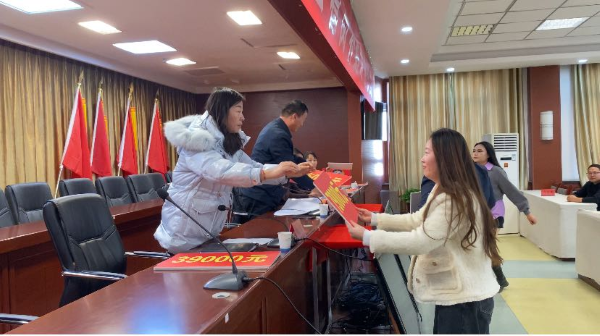 图为:新疆阿克苏地区温宿县人社局举行2023年温宿县企业稳岗补贴发放仪式,温宿县委组织部副部长,县人社局党组书记、副局长杨海东出席发放仪式并作重要讲话(江凯摄)