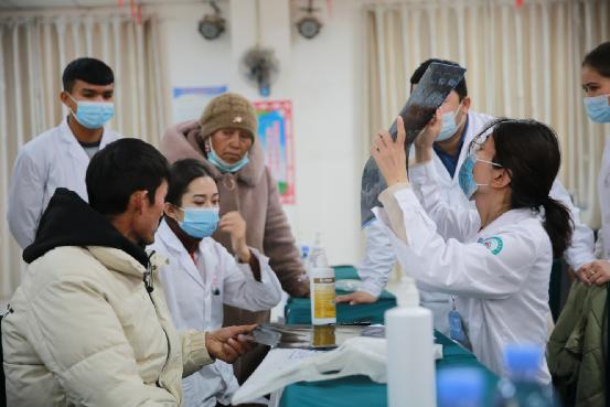 “医生,您帮我看看检查报告,我的眼睛总是看不清,做了很多检查,吃了很多药,也不见好……”义诊现场,村民吐尔逊(化名)将检查报告及CT片递给眼科援疆专家唐旭园副主任手中,并述说着自己的病症。