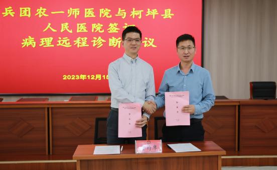 随后,双方领导共同签订了“病理远程诊断”和“创伤中心区域协同救治网络建设”合作协议书。后续将定期帮助柯坪县人民医院提升病理学科的发展水平,提高创伤患者的救治能力。