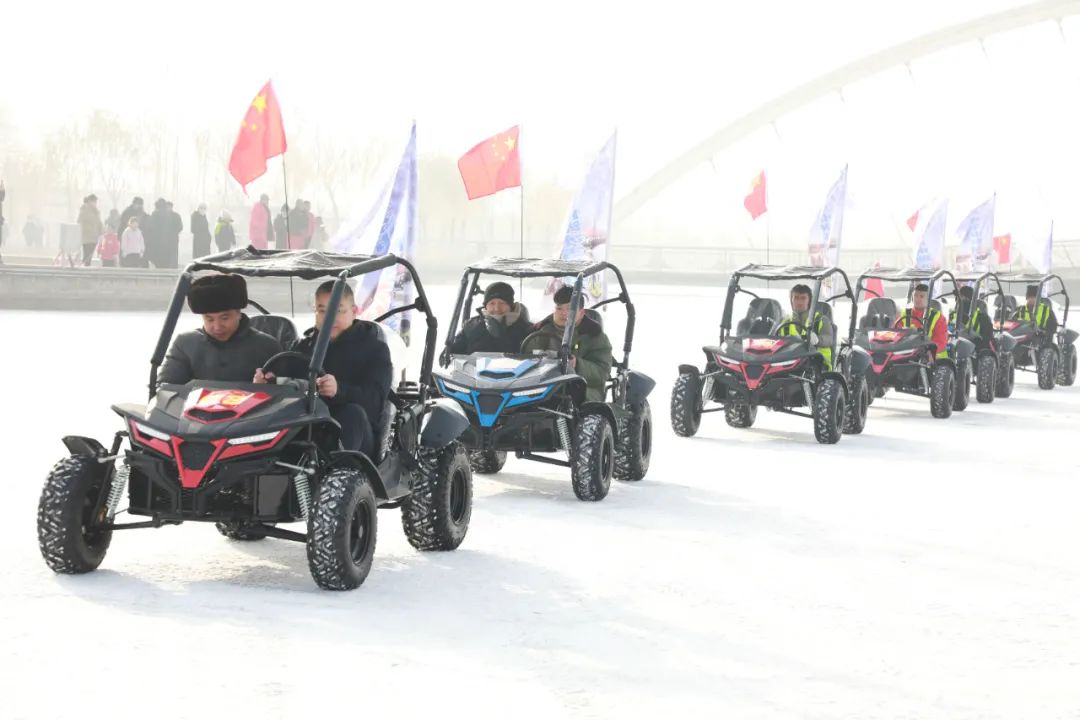 马达的轰鸣声,轮胎与冰面的摩擦声,更是让现场群众体验到了冰雪世界的速度与激情,只见大家驾驶着一辆辆冰上越野车或是跑圈竞技,或是冲刺漂移,好不过瘾。