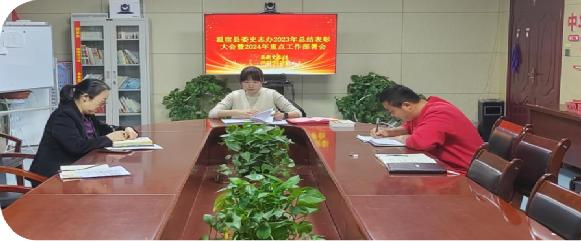 会上,县委史志办首学了《习近平总书记关于党史地方志工作重要论述》,要求:“坚持以习近平总书记关于党史和地方志工作的重要指示统揽史志工作全局,发挥好史志“以史鉴今、资政育人”的重要作用,推动新时代党史和地方志事业高质量发展”。接着,杨雅琴同志总结2023年工作及安排2024年重点工作,回顾2023年党史和地方志工作取得的各项工作成绩;2023年,在县委、县政府坚强领导下和上级部门精心指导下,县委史志办党支部团结带领全体党员干部,牢牢把握新时代党的治疆方略,立足“为党立言、为国存史、为民修志”的职能,明确职责任务,抓实党史研究、年鉴编纂、人才队伍建设等工作,县委党史地方志事业呈现出新面貌新气象,取得了新成果新成效。随后,宣布2023年获得优秀科室和先进个人的决定,勉励大家再接再厉,再创佳绩。