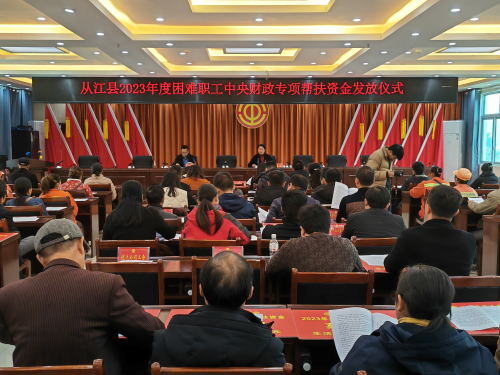 12月29日下午,县总工会在县职工服务中心举行2023年度困难职工中央财政帮扶资金集中发放仪式。县总工会党组书记、副主席周盛梅同志主持集中发放仪式,相关基层工会主席及困难职工家属共计70余人参加。