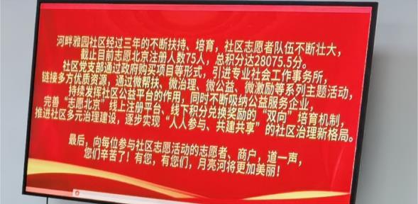 2023年,河畔雅园社区链接多方优质资源,通过微帮扶、微治理、微公益、微激励等系列主题活动,持续发挥社区公益平台的作用。在《志愿北京》注册75人,积分28075.5分,开展巡逻值守、社区清洁、文明宣传、社区活动协助等多项志愿服务。记忆最深刻的是1月份疫情卡口执勤,天儿冷、人少,没有志愿者的支持社区根本忙不过来。短暂的视频让大家重温了在一起的峥嵘岁月。2024年,河畔雅园社区在党建引领下将深化推进“四微”服务,再聚力,再起航,创出新业绩。(通讯员:常魁星、王爱芹)