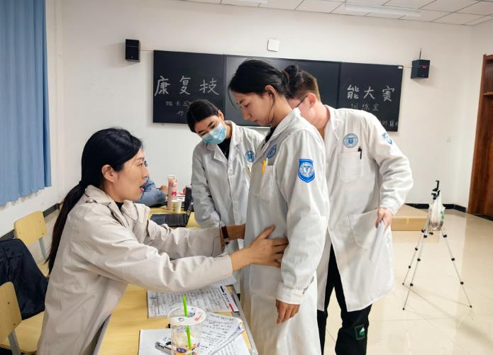 胡伟玲院长介绍说:”2023年11月底至12月中旬,医院选派康复医学科边仁秀主任、付文静治疗师、杨向治疗师到校指导帮扶。各位专家倾囊相授,指导团队教师认真示范,工作认真负责,有效提升了学生的水平,丰富了教师教学经验,为学校提升教学能力、争取更多荣誉、贯彻落实习近平总书记关于职业教育技能强国的精神奠定了坚实基础。“