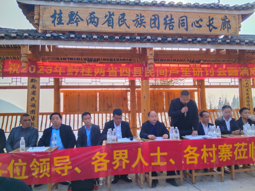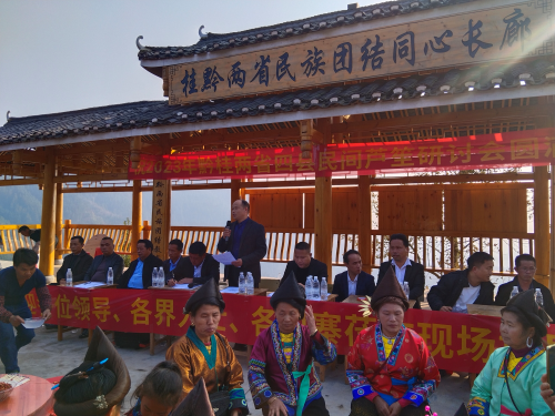 代表人士伍文剑接着向大会致词。他倡议,每个村屯和坡会都要恪守自己的芦笙文化传统,从民族服饰到传统习俗都应做到正本清源;要兼顾各族群众的生活水准和精神需求,在活动过程中寻求最大公约数,画好最大同心圆,不断推进两省四县民族团结进步共建共享。他强调,各村屯要设法筹资改善本坡会芦笙堂基础设施建设,在坡会活动区域规划好比赛区、观众区和摊点区,全力做好交通要道疏通和治安维稳等各项工作,确保无交通事故和治安事件发生,使每一位参与者都能高兴而来,满意而归。他要求,各地芦笙协会要做好移风易俗引导工作,从舆论层面推动芦笙文化的健康传承与发展,不要在芦笙购买的性价比、奖金奖品的数额和姑妈饭的多少等事项上作攀比和纠结,要坚持底线思维,抵制恶性竞争,创造和美和谐。