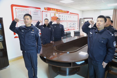 “我宣誓:忠于中国共产党,忠于祖国,忠于人民,忠于宪法和法律……”,在领誓人的带领下,全体司法警察、警务辅助人员警容严整、面向警旗,高举右拳,庄严誓词,进一步筑牢忠诚警魂,践行初心使命,永葆忠诚本色。