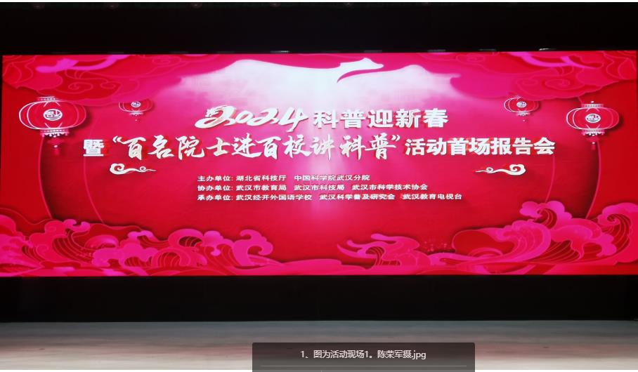 1月12日,由湖北省科技厅和中国科学院武汉分院共同主办的“2024科普迎新春暨百名院士进百校讲科普”活动首场报告会如期举行。
