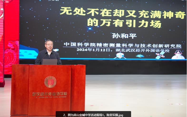 报告会开始,武汉市领导和湖北省科技厅领导分别致辞,随后孙和平院士从时间与空间的基本概念与牛顿万有引力定律开始,结合中学课堂上的重力知识,讲解了重力学在科学研究、资源探测等国家大型工程建设领域中的科研应用。孙院士的演讲十分精彩,激发了学生们对科学的极大热情。