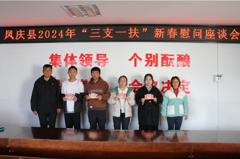 近日,凤庆县召开2024年“三支一扶” 人员新春慰问座谈会。全县2022年、2023年招募的“三支一扶”人员参加会议。