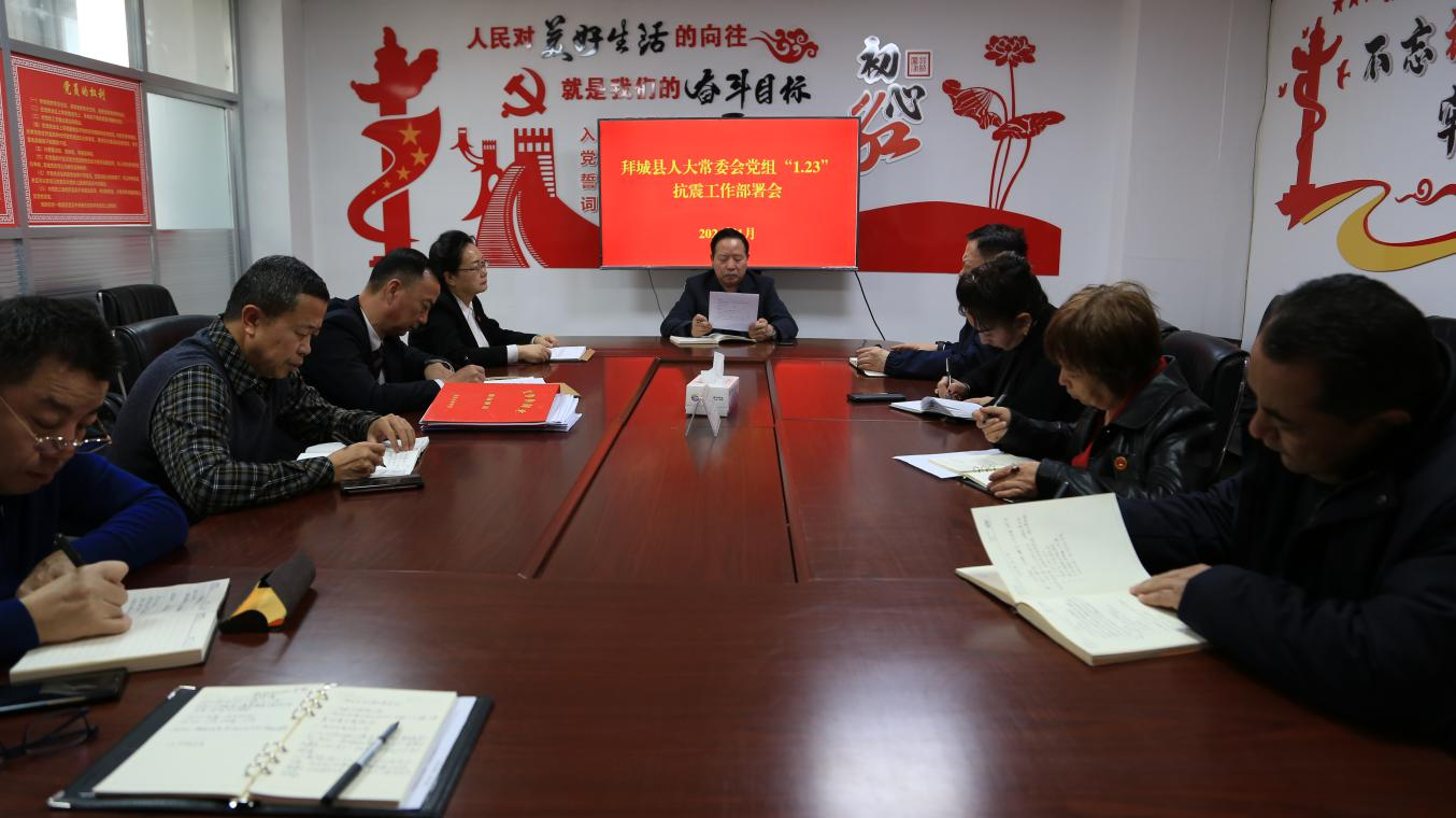 1月23日上午,拜城县委主要领导对防震救灾工作做了具体部署,按照县委要求,县人大常委会党组主要领导安排,班子成员要坚持人民至上、生命至上的理念,尽最大努力保障人民群众生命财产安全,带头赴包联乡镇一线开展地震应急处置和隐患排查工作,并及时做好群众心理疏导,确保辖区群众身心健康。