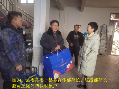 岁寒情深送关怀,新春慰问暖人心。近日,在新春佳节即将到来之际,县委常委、县委宣传部部长、县委统战部部长赵灵芝及县委统战部领导班子成员梁朋彩、林少丛等积极深入到基层一线开展春节慰问活动,向港澳台侨同胞、台属、侨眷、新的社会阶层人士代表、退休老干部、驻村干部、帮扶村“两委”及单位职工帮扶对象户等70余人,为他们送上新春的祝福和慰问品,把党和政府的温暖送到他们心中。