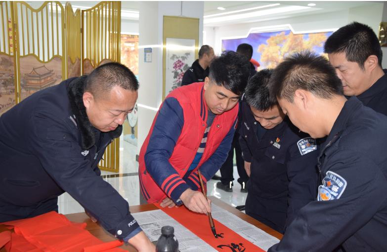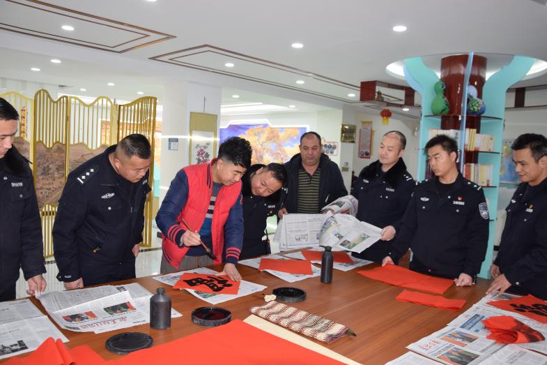 在2024年农历新年即将来临之际,1月31日,沙雅县公安局举办“翰墨迎新春·书法润警营”活动,特邀请沙雅县文联、沙雅县书法协会成员为广大民警、辅警送上春联和新春祝福。