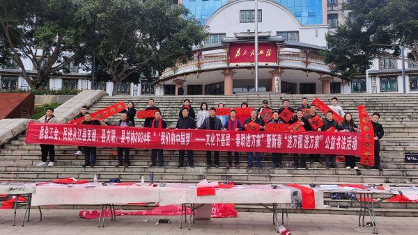 在新春佳节来临之际,为打造欢乐祥和的节日气氛,弘扬中华民族传统文化,把党的关怀送到工会职工群众手中去,从江县总工会联合民进从江县支部、县文体广电旅游局、县文联、县书协、县美协开展2024年新春“送万福 进万家”公益书法活动。1月30日,本次公益书法活动在县行政中心广场画上了圆满的句号。