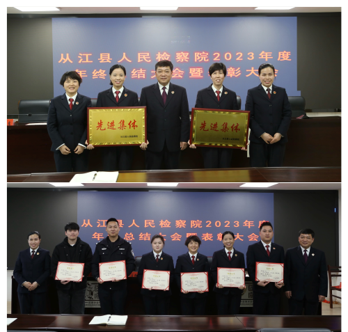 会议表彰了我院在2023年度工作突出的先进集体和先进个人,并号召全体干警要向先进看齐,向榜样学习,推动从江检察工作再上新台阶。
