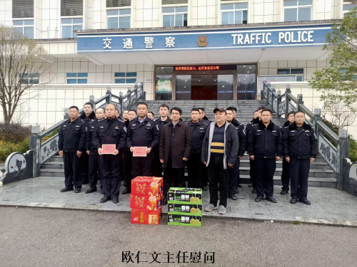 2月7日,县人大常委会主任欧仁文、县人大常委会办公室、县总工会到县交警大队向全体交通干警表示亲切问候,并希望全体交通干警继续发扬吃苦耐劳,乐于奉献的精神,坚守岗位,在春节期间坚守岗位,为从江道路安全保畅,让从江39万人民群众过上一个安乐祥和的春节保驾护航。
