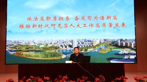 拜城县委高度重视人大培训工作,主要领导听取培训专题汇报并提出相关要求。县委组织部统筹安排,将此次培训纳入全县干部培训计划,使培训工作在节后就立即开展。此次培训也得到地区人大常委会工委的大力支持,地区人大常委会工委副秘书长、办公室主任、二级巡视员徐云峰亲自莅临现场,以“依法履职勇担当 奋发有为谱新篇 推动新时代阿克苏人大工作高质量发展”为题,从立法工作、监督工作、代表工作、自身建设四个方面分别做了专题辅导。