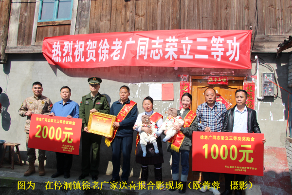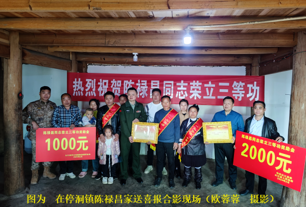连日来,从江县人武部、县退役军人事务局、贵州从江农村商业银行股份有限公司、从江县非公有制经济组织拥军协会与有关乡镇(街道)党政主要领导、分管领导及村居(社区)退役军人服务站,联合向在部队荣立三等功的7名现役军人家庭“派送”新春“硬核”礼物,送去喜报、奖励金和新春祝福,为新春再增添一份特殊热闹气氛,与父老乡亲共享军功、见证荣耀。