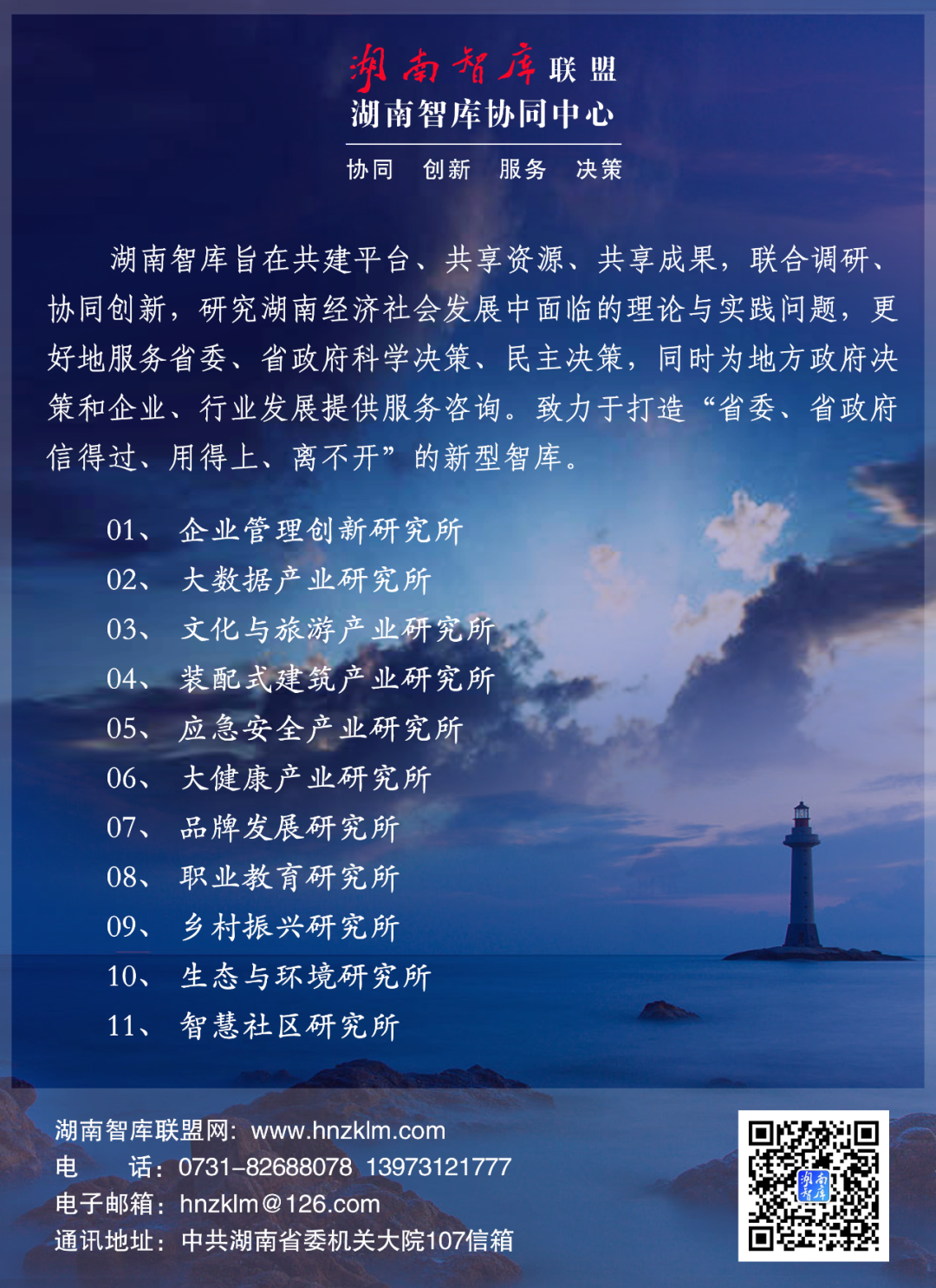 湖南智库联盟&湖南智库协同中心是2014年9月由湖南省人民政府参事室、中南大学、中共湖南省委党校(湖南行政学院)、湖南省社会科学院、湖南大学、湖南师范大学、长沙理工大学、湖南农业大学、中南林业科技大学、湖南发展研究中心等10家单位发起并签约成立的联合型智库。联盟依托高校的学科优势,文、史、哲、理、工、经、管、法律等门类齐全,适应决策咨询学科全覆盖的知识需求,秉承“协同 创新 服务 决策”的理念,积极承担智库的责任与担当,服务国家大政方针,力求做到真正成为“政府帮手、产业推手、企业助手”。