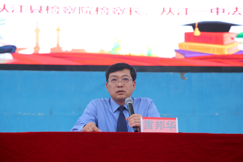 为深入开展检察机关“检护民生”专项行动,护航未成年人健康成长,3月26日下午,从江县人民检察院党组书记、检察长雷邦华以法治副校长身份走进县第一民族中学,为1500余名师生带来一堂生动的法治课。