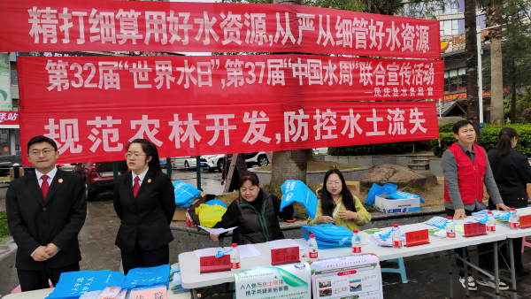 为进一步提高广大人民群众的节约用水意识,增强防治水土资源流失的行动自觉,不断提升水资源及水土资源保护水平,近日,凤庆县水务局联合临沧市生态环境局凤庆分局等8个部门在凤庆县易和广场举办第32届“世界水日”第37届“中国水周”纪念宣传暨水土保持科普活动,进一步推动水法规普法宣传教育、水土资源新时代科普贤实践宣传主题活动工作走深走实。